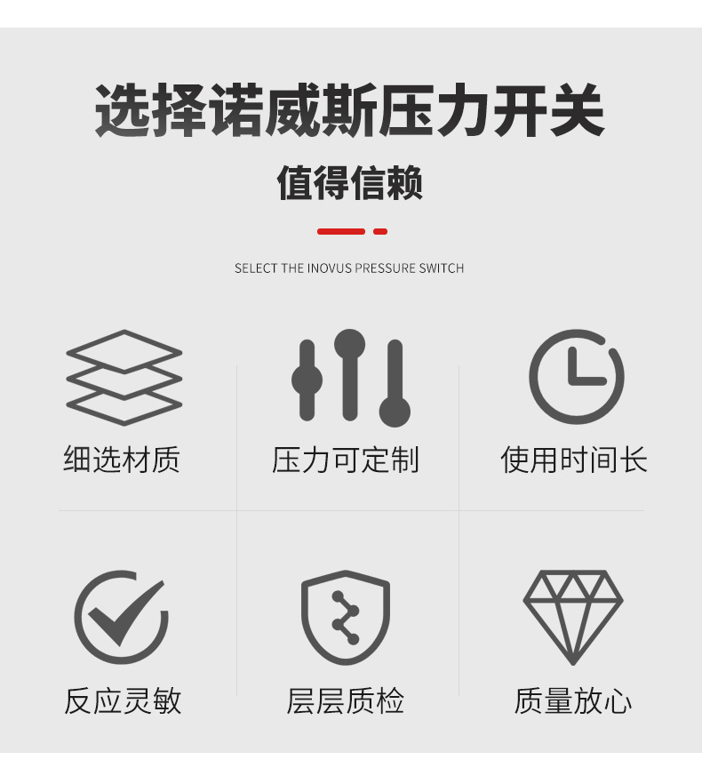 本公司主要生產(chǎn)各類壓力開關(guān)、溫度和流量的控制開關(guān)、壓力傳感器等產(chǎn)品。產(chǎn)品為氣動(dòng)技術(shù)、制冷系統(tǒng)、水處理、家用電器、包裝系統(tǒng)、液壓技術(shù)、工業(yè)自動(dòng)化等各個(gè)領(lǐng)域,提供優(yōu)良的壓力控制設(shè)備。