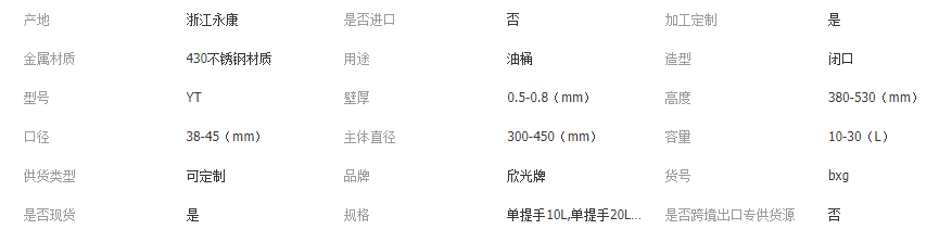此油桶材質(zhì)為430不銹鋼系列材質(zhì),吸鐵石可以吸住。不銹鋼制品便面會(huì)有輕微劃痕,介意者勿拍。單柄系列的油桶尾部沒有安全閥,三提手油桶尾部帶有安全閥。