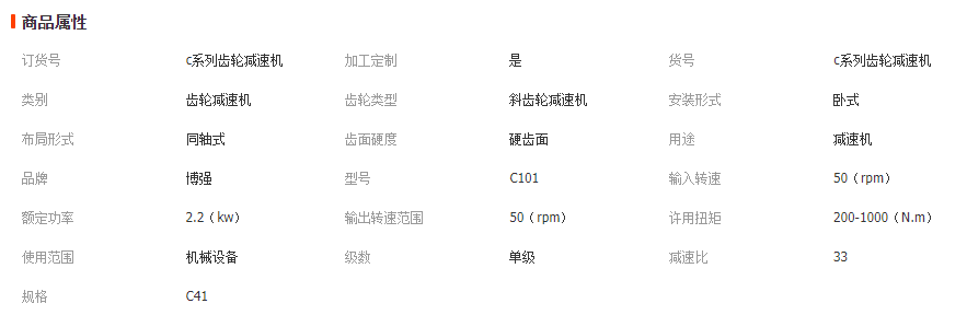 2、一級C平行軸輸出、體積小、減速比小、輸出轉速快、噪音低、平均效率98%。