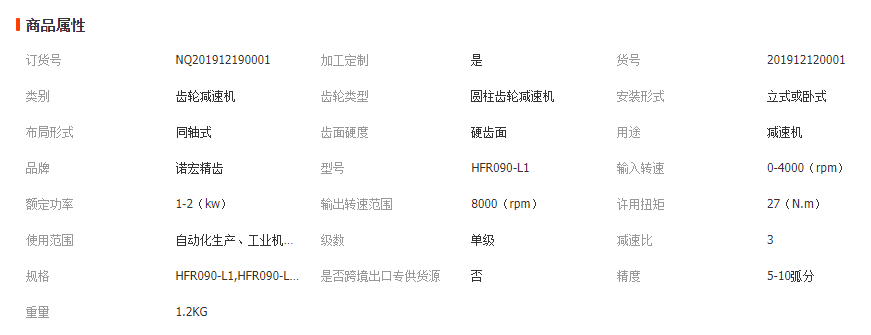 行星減速機(jī)產(chǎn)品規(guī)格: