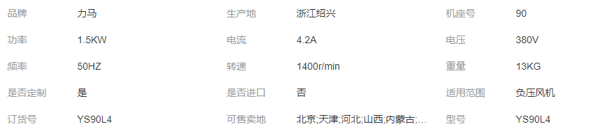 您所在的位置:全球零部件網(wǎng)>產(chǎn)品供應(yīng)>家電行業(yè)>電機>直流電機>YS90L4空調(diào)電機 工業(yè)冷風(fēng)機、負(fù)壓風(fēng)機專用電機 1.5Kw 低噪聲