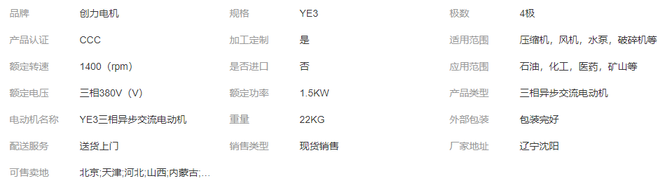立即發(fā)布求購意向本網(wǎng)頁所展示的有關(guān)【YE3三相異步交流電動機(jī) 2.2/3/7.5/15/30KW 防爆變頻馬達(dá)_交流電機(jī)_遼寧創(chuàng)力電機(jī)有限公司】的信息/圖片/參數(shù)等由全球零部件網(wǎng)的會員【遼寧創(chuàng)力電機(jī)有限公司】提供,由全球零部件網(wǎng)會員【遼寧創(chuàng)力電機(jī)有限公司】自行對信息/圖片/參數(shù)等的真實性、準(zhǔn)確性和合法性負(fù)責(zé),本平臺(本網(wǎng)站)僅提供展示服務(wù),請謹(jǐn)慎交易,因交易而產(chǎn)生的法律關(guān)系及法律糾紛由您自行協(xié)商解決,本平臺(本網(wǎng)站)對此不承擔(dān)任何責(zé)任。您在本網(wǎng)頁可以瀏覽【YE3三相異步交流電動機(jī) 2.2/3/7.5/15/30KW 防爆變頻馬達(dá)_交流電機(jī)_遼寧創(chuàng)力電機(jī)有限公司】有關(guān)的信息/圖片/價格等及提供【YE3三相異步交流電動機(jī) 2.2/3/7.5/15/30KW 防爆變頻馬達(dá)_交流電機(jī)_遼寧創(chuàng)力電機(jī)有限公司】的商家公司簡介、聯(lián)系方式等信息。