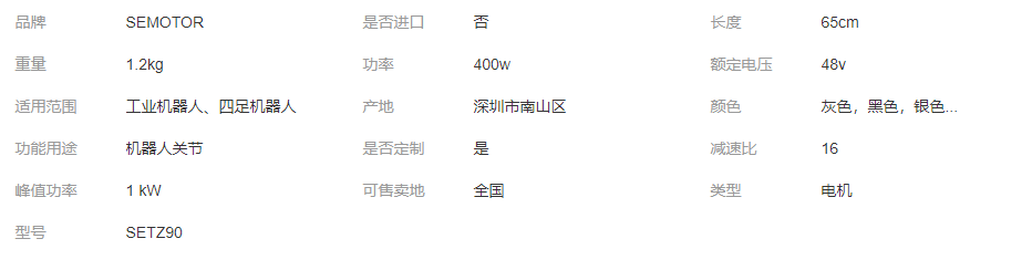 >產(chǎn)品供應(yīng)>家電行業(yè)>電機(jī)>直流電機(jī)>semotor 軸向磁通電機(jī) 1kW高功率機(jī)器人關(guān)節(jié)電機(jī) SETZ90系列 行星減速 一般經(jīng)營項目是:國內(nèi)貿(mào)易,貨物及技術(shù)進(jìn)出口。,許可經(jīng)營項目是:電機(jī)和電動設(shè)備研發(fā)、生產(chǎn)和銷售,電機(jī)軟件設(shè)備相關(guān)的技術(shù)…