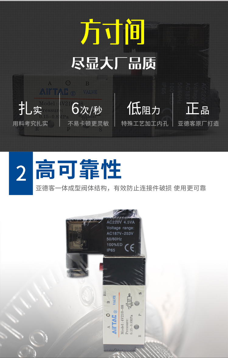 >產(chǎn)品供應(yīng)>家電行業(yè)>閥門>電磁閥>亞德客電磁閥4V210-08氣動(dòng)電磁控制閥220v換向閥4V110-06氣閥2 4v 主營(yíng): 氣缸 氣動(dòng)接頭 電磁閥