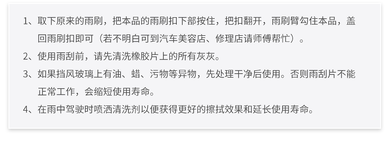 本公司專業(yè)生產(chǎn)各種型號(hào)雨刷、雨刮器,汽車雨刮臂片、通用型無(wú)骨雨刷器、通用型有骨雨刷器、專車專用雨刷器等。