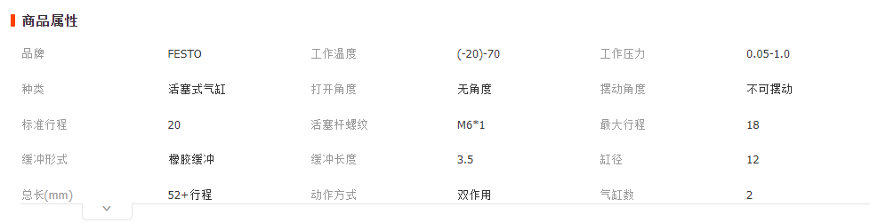 >產(chǎn)品供應(yīng)>電動(dòng)工具>發(fā)動(dòng)機(jī)>氣缸體及相關(guān)零件>FESTO氣缸ADN-12-18-I-P-A-Q短行程扁平帶緩沖墊環(huán)防旋緊湊型氣缸 主營(yíng): 氣動(dòng)控制元件 氣動(dòng)接頭 氣缸
