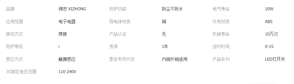 立即發(fā)布求購意向本網(wǎng)頁所展示的有關(guān)【廠家直銷觸摸開關(guān)觸控感應(yīng)調(diào)光開關(guān)LED床頭臺燈觸碰感應(yīng)帶燈開關(guān)_開關(guān)_中山市錫忠電子科技有限公司】的信息/圖片/參數(shù)等由全球零部件網(wǎng)的會員【中山市錫忠電子科技有限公司】提供,由全球零部件網(wǎng)會員【中山市錫忠電子科技有限公司】自行對信息/圖片/參數(shù)等的真實(shí)性、準(zhǔn)確性和合法性負(fù)責(zé),本平臺(本網(wǎng)站)僅提供展示服務(wù),請謹(jǐn)慎交易,因交易而產(chǎn)生的法律關(guān)系及法律糾紛由您自行協(xié)商解決,本平臺(本網(wǎng)站)對此不承擔(dān)任何責(zé)任。您在本網(wǎng)頁可以瀏覽【廠家直銷觸摸開關(guān)觸控感應(yīng)調(diào)光開關(guān)LED床頭臺燈觸碰感應(yīng)帶燈開關(guān)_開關(guān)_中山市錫忠電子科技有限公司】有關(guān)的信息/圖片/價格等及提供【廠家直銷觸摸開關(guān)觸控感應(yīng)調(diào)光開關(guān)LED床頭臺燈觸碰感應(yīng)帶燈開關(guān)_開關(guān)_中山市錫忠電子科技有限公司】的商家公司簡介、聯(lián)系方式等信息。