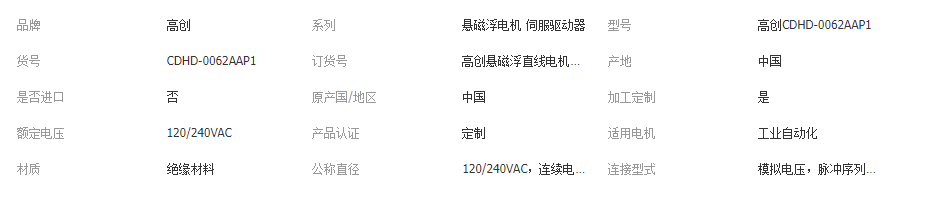 >產(chǎn)品供應(yīng)>工程配件>傳動(dòng)系統(tǒng)>驅(qū)動(dòng)電機(jī)>高創(chuàng)CDHD-0062AAP1懸磁浮電機(jī)高性能伺服驅(qū)動(dòng)器脈沖型 氣動(dòng)元件、工業(yè)電器元件、繼電器、溫控器、熱繼電器、