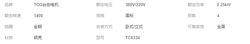 >產(chǎn)品供應(yīng)>工程配件>傳動系統(tǒng)>驅(qū)動電機(jī)>TCG臺創(chuàng)電機(jī)三相異步鋁殼馬達(dá)380V臥式立式4極TC6334電機(jī)0.25KW廠家直銷榮立創(chuàng) 減速機(jī)、馬達(dá)、變頻器、剎車器、離合器、控制器、變速器、鋁殼電機(jī)、鼓風(fēng)機(jī)、離心風(fēng)機(jī)、漩渦氣泵、水泵、耐腐泵、深井泵、馬…