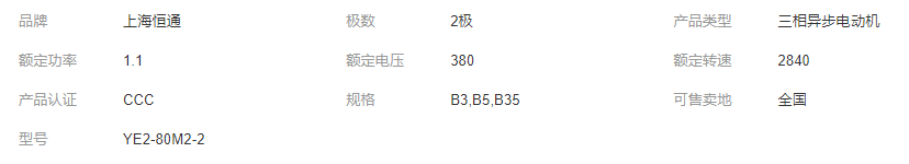 立即發(fā)布求購意向本網(wǎng)頁所展示的有關(guān)【恒通 三相異步電動機 YE2 80M2-2極立臥兩用電動機馬達(dá)_電機_臺州恒通電機有限公司】的信息/圖片/參數(shù)等由全球零部件網(wǎng)的會員【臺州恒通電機有限公司】提供,由全球零部件網(wǎng)會員【臺州恒通電機有限公司】自行對信息/圖片/參數(shù)等的真實性、準(zhǔn)確性和合法性負(fù)責(zé),本平臺(本網(wǎng)站)僅提供展示服務(wù),請謹(jǐn)慎交易,因交易而產(chǎn)生的法律關(guān)系及法律糾紛由您自行協(xié)商解決,本平臺(本網(wǎng)站)對此不承擔(dān)任何責(zé)任。您在本網(wǎng)頁可以瀏覽【恒通 三相異步電動機 YE2 80M2-2極立臥兩用電動機馬達(dá)_電機_臺州恒通電機有限公司】有關(guān)的信息/圖片/價格等及提供【恒通 三相異步電動機 YE2 80M2-2極立臥兩用電動機馬達(dá)_電機_臺州恒通電機有限公司】的商家公司簡介、聯(lián)系方式等信息。