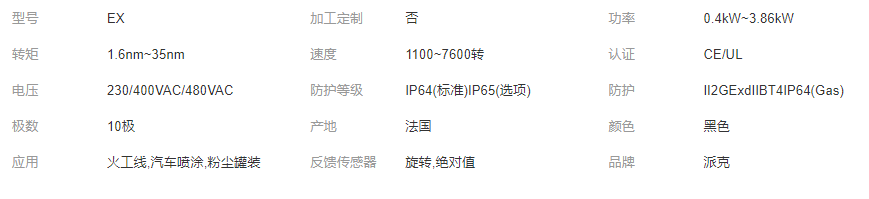 您所在的位置:全球零部件網(wǎng)>產(chǎn)品供應(yīng)>家電行業(yè)>電機>派克EX防爆伺服電機II2GD Ex d IIB T4證書齊全CCC