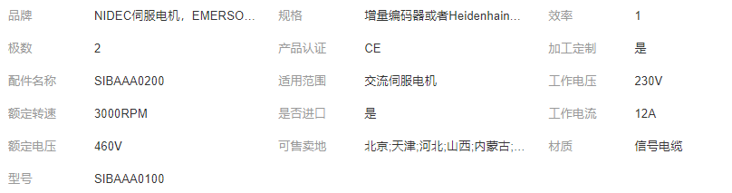 您所在的位置:全球零部件網(wǎng)>產(chǎn)品供應(yīng)>家電行業(yè)>電機(jī)>SIBAAA0030信號(hào)電纜 NIDEC伺服電機(jī),EMERSON伺服電機(jī),CONTROL TECHNIQUES伺服電機(jī)