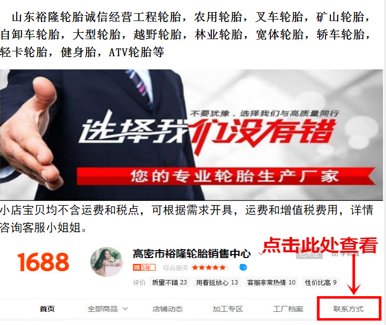立即發(fā)布求購(gòu)意向本網(wǎng)頁(yè)所展示的有關(guān)【農(nóng)用輪胎五征時(shí)風(fēng)三輪車(chē)四輪車(chē)6.50-16羊角花紋650-16加厚雙圈_輪胎_高密市裕隆輪胎銷(xiāo)售中心】的信息/圖片/參數(shù)等由全球零部件網(wǎng)的會(huì)員【高密市裕隆輪胎銷(xiāo)售中心】提供,由全球零部件網(wǎng)會(huì)員【高密市裕隆輪胎銷(xiāo)售中心】自行對(duì)信息/圖片/參數(shù)等的真實(shí)性、準(zhǔn)確性和合法性負(fù)責(zé),本平臺(tái)(本網(wǎng)站)僅提供展示服務(wù),請(qǐng)謹(jǐn)慎交易,因交易而產(chǎn)生的法律關(guān)系及法律糾紛由您自行協(xié)商解決,本平臺(tái)(本網(wǎng)站)對(duì)此不承擔(dān)任何責(zé)任。您在本網(wǎng)頁(yè)可以瀏覽【農(nóng)用輪胎五征時(shí)風(fēng)三輪車(chē)四輪車(chē)6.50-16羊角花紋650-16加厚雙圈_輪胎_高密市裕隆輪胎銷(xiāo)售中心】有關(guān)的信息/圖片/價(jià)格等及提供【農(nóng)用輪胎五征時(shí)風(fēng)三輪車(chē)四輪車(chē)6.50-16羊角花紋650-16加厚雙圈_輪胎_高密市裕隆輪胎銷(xiāo)售中心】的商家公司簡(jiǎn)介、聯(lián)系方式等信息。