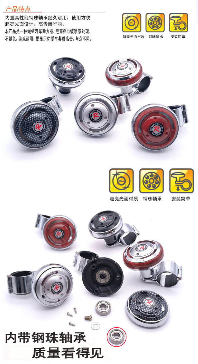 >產(chǎn)品供應(yīng)> HVAC汽車(chē)>汽車(chē)方向盤(pán)助力球轉(zhuǎn)向器多功能省力拐彎倒車(chē)輔助輪軸承式改裝通用 車(chē)鏡;靜電帶;車(chē)載充電器;椅背掛鉤;車(chē)身防擦裝飾條;椅背拉手;LED燈音樂(lè)控制器;手機(jī)支架;置物桶;車(chē)身裝飾風(fēng)口
