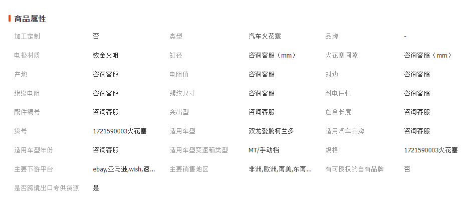立即發(fā)布求購意向本網(wǎng)頁所展示的有關(guān)【適用愛騰享譽雷斯特陸地柯蘭火花塞批發(fā)汽車配件1721590003火花塞_火花塞_北京雷邁達科技有限公司】的信息/圖片/參數(shù)等由全球零部件網(wǎng)的會員【北京雷邁達科技有限公司】提供,由全球零部件網(wǎng)會員【北京雷邁達科技有限公司】自行對信息/圖片/參數(shù)等的真實性、準確性和合法性負責,本平臺(本網(wǎng)站)僅提供展示服務,請謹慎交易,因交易而產(chǎn)生的法律關(guān)系及法律糾紛由您自行協(xié)商解決,本平臺(本網(wǎng)站)對此不承擔任何責任。您在本網(wǎng)頁可以瀏覽【適用愛騰享譽雷斯特陸地柯蘭火花塞批發(fā)汽車配件1721590003火花塞_火花塞_北京雷邁達科技有限公司】有關(guān)的信息/圖片/價格等及提供【適用愛騰享譽雷斯特陸地柯蘭火花塞批發(fā)汽車配件1721590003火花塞_火花塞_北京雷邁達科技有限公司】的商家公司簡介、聯(lián)系方式等信息。