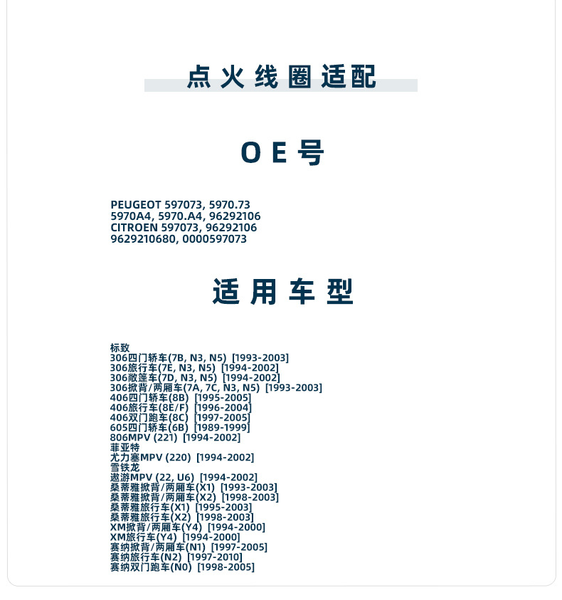 適用于標(biāo)致306/406/806/605/雪鐵龍5970A4點(diǎn)火線圈597073耐用