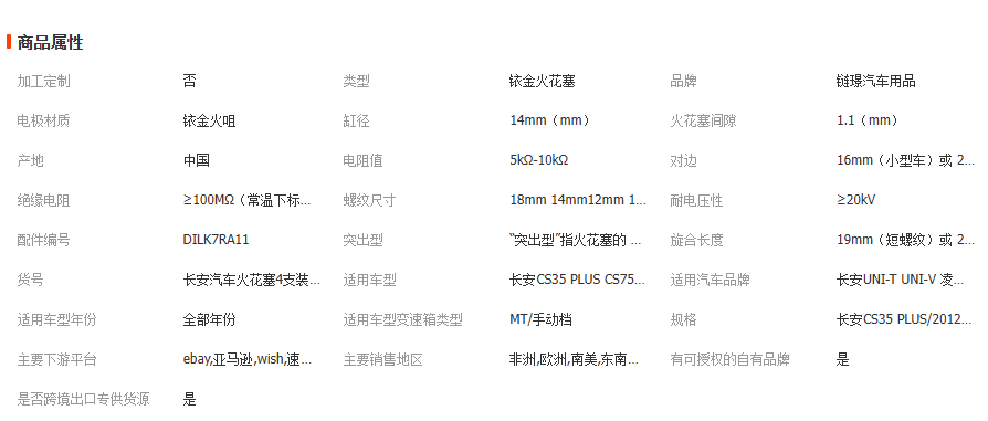 立即發(fā)布求購意向本網(wǎng)頁所展示的有關(guān)【適用長安CS35 UNI-K凌軒睿騁逸動致尚sparkplug銥鉑金火花塞4支裝_分火線_義烏市鏈璟汽車用品廠】的信息/圖片/參數(shù)等由全球零部件網(wǎng)的會員【義烏市鏈璟汽車用品廠】提供,由全球零部件網(wǎng)會員【義烏市鏈璟汽車用品廠】自行對信息/圖片/參數(shù)等的真實性、準確性和合法性負責,本平臺(本網(wǎng)站)僅提供展示服務(wù),請謹慎交易,因交易而產(chǎn)生的法律關(guān)系及法律糾紛由您自行協(xié)商解決,本平臺(本網(wǎng)站)對此不承擔任何責任。您在本網(wǎng)頁可以瀏覽【適用長安CS35 UNI-K凌軒睿騁逸動致尚sparkplug銥鉑金火花塞4支裝_分火線_義烏市鏈璟汽車用品廠】有關(guān)的信息/圖片/價格等及提供【適用長安CS35 UNI-K凌軒睿騁逸動致尚sparkplug銥鉑金火花塞4支裝_分火線_義烏市鏈璟汽車用品廠】的商家公司簡介、聯(lián)系方式等信息。