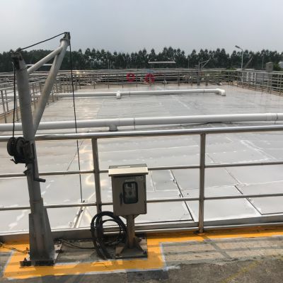 在以上三導(dǎo)桿組成的系統(tǒng)中,由于三導(dǎo)桿橫截面很小,對污水的流動阻力非常小,從而實(shí)現(xiàn)工藝的正常運(yùn)行。