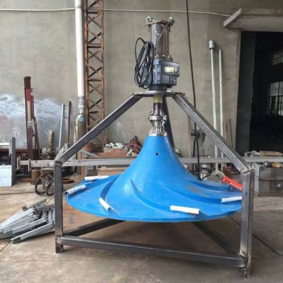 雙曲面攪拌機(jī)可以創(chuàng)建大容量水流的攪拌裝置,并能以較小的動(dòng)力獲得大面積循環(huán)、柔和的水流。雙曲面攪拌機(jī)的葉輪結(jié)構(gòu)設(shè)計(jì),大限度的將流體特性與機(jī)械運(yùn)動(dòng)相結(jié)合。多曲葉輪的曲面是方程為xy=b,曲線沿y軸旋轉(zhuǎn)而構(gòu)成的曲面體;為了迎合水體流動(dòng),設(shè)計(jì)從葉輪的中心進(jìn)水,這一方面減少了進(jìn)水紊流,另一方面保證了液體對(duì)葉輪表面的壓力均勻,從而保證整機(jī)在運(yùn)動(dòng)狀態(tài)下的平衡。在漸開(kāi)多弧面上均勻有八條導(dǎo)游葉片,借助液體自重壓力作補(bǔ)充進(jìn)水獲得的勢(shì)能與葉輪旋轉(zhuǎn)時(shí)產(chǎn)生的離心力形成動(dòng)能,液體在中立加速度的條件先沿葉輪圓周方向做切線運(yùn)動(dòng),在池壁的反射作用下,形成自上而下地循環(huán)水流,故可獲得在軸向(y)和徑向(x)方向的交叉水流。正是由于多曲面攪拌機(jī)葉輪的結(jié)構(gòu)和特性和接近池底安裝的特點(diǎn),決定在工作中可獲得理想的攪拌效果,能有效的消除攪拌邊角。