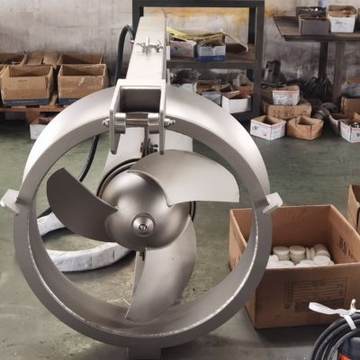 螺旋槳為三葉片式,與輪轂整體鑄造,材質(zhì)為AISI316Ti,設(shè)計(jì)用于處理常規(guī)污水。采用水力平衡的無(wú)纏繞自清潔設(shè)計(jì)。螺旋槳具有高效的水力性能。螺旋槳葉輪采用單鍵栓固定在軸的端部,采用保護(hù)帽進(jìn)行密封,并應(yīng)使用鎖定墊圈系統(tǒng)。