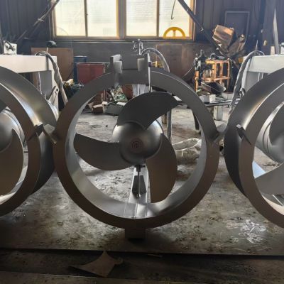 螺旋槳葉輪能夠處理常規(guī)污水。螺旋槳葉輪在結(jié)構(gòu)設(shè)計(jì)上是水力平衡的無纏繞和自清潔形式。螺旋槳葉輪精心地進(jìn)行加工和表面處理,能高效率傳遞電機(jī)輸出功率。葉輪有三葉片。所有葉片都是相同的形式,間隔距離均勻的。葉片與輪觳使用不銹鋼AISI316或SU304。螺旋槳葉輪采用單鍵栓固定在軸的端部,采用保護(hù)帽進(jìn)行密封,并使用鎖定墊圈系統(tǒng)。螺旋槳葉輪經(jīng)動平衡檢驗(yàn)合格。