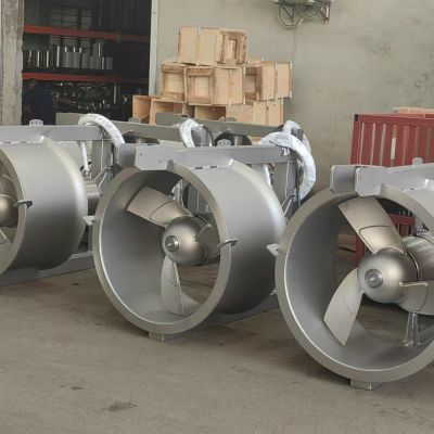 螺旋槳葉輪能夠處理常規(guī)污水。螺旋槳葉輪在結構設計上是水力平衡的無纏繞和自清潔形式。螺旋槳葉輪精心地進行加工和表面處理,能高效率傳遞電機輸出功率。葉輪有三葉片。所有葉片都是相同的形式,間隔距離均勻的。葉片與輪觳使用不銹鋼AISI316或SU304。螺旋槳葉輪采用單鍵栓固定在軸的端部,采用保護帽進行密封,并使用鎖定墊圈系統(tǒng)。螺旋槳葉輪經(jīng)動平衡檢驗合格。