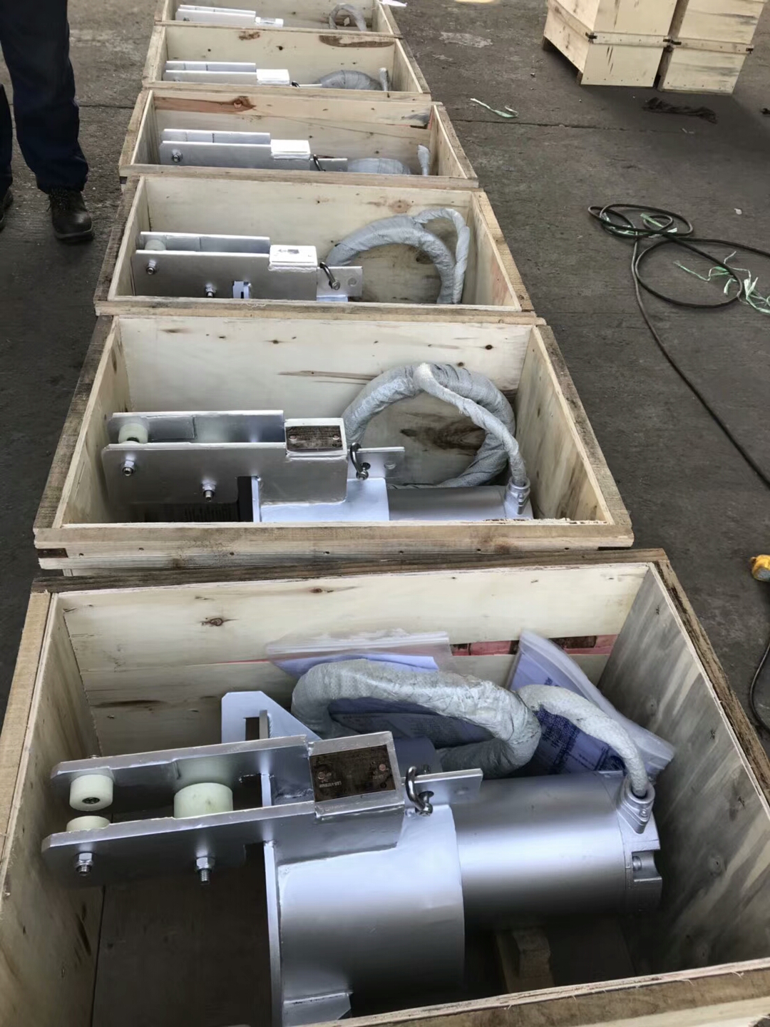電機配有潛水電纜,為包括控制和動力芯線的同一根電纜。電纜配備單獨可靠的電纜進口。電纜的尺寸符合行業(yè)標準并提供足夠的長度以接入接線盒或就地控制柜且不需拼接。電纜接入接線室應使用可重復使用的雙道壓縮橡膠套密封,不能使用環(huán)氧、硅樹脂或其它二次密封系統(tǒng)進行密封,應保證電纜的更換,電纜出口為軸向,與電機殼外表面同向貼緊布置,同時用電纜夾和拉緊鋼纜將電纜固定,避免受水流沖擊晃動,且不會在起吊時鉤住。