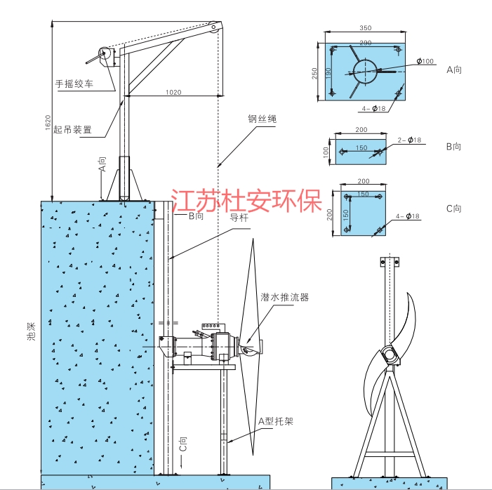 用于生物處理池中進行低速攪拌,以使池中泥水充分混合又不致產(chǎn)生充氧作用。